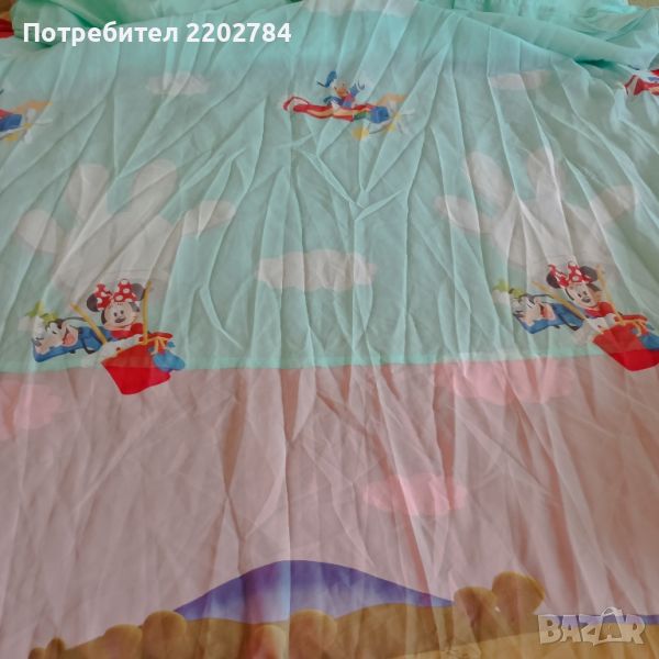 Първото перде с Мики маус е с двоен воал като долната част на пердето е с дължина 175см,а общата дължина 260см.Ширина 150см.За тръбен корниз,но могат да се пришият копчета за обикновен корниз.