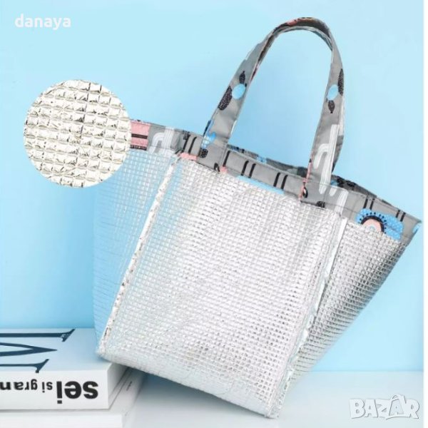 Термо чанта. Чанта за храна и напитки с изолиращо фолио във вътрешната си част. Свеж и цветен принт върху всеки модел. Чантата се отваря и затваря с велкро лепенка. С удобни дръжки за лесно носене. Компактен размер, лека и приятна на допир материя. Чаната е с широко приложение – може да се използва като чанта за детска кухня, чанта за разходки в парка, чанта за съхранение на обяда за училище на детето и т.н.