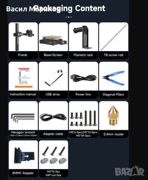 - Филамент: 1.75mm PLA/WOOD/TPU/ABS