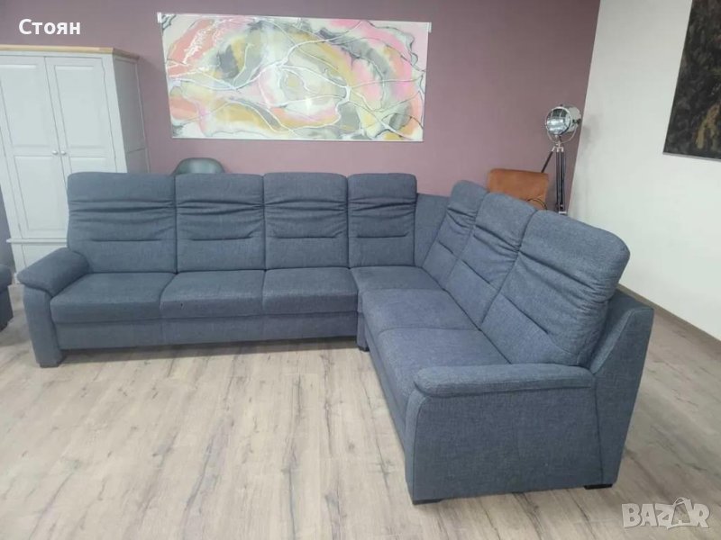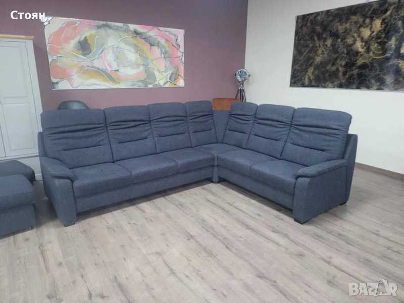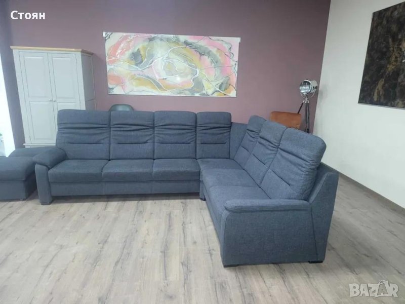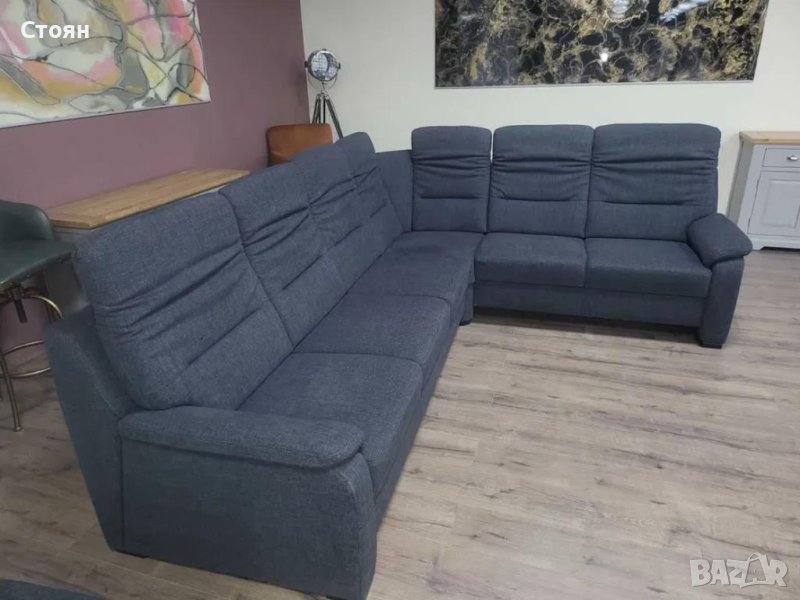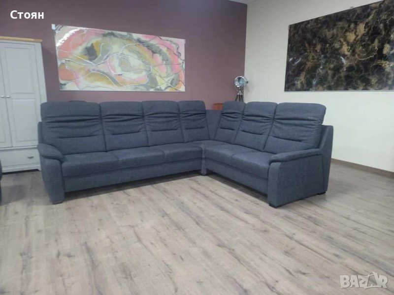Тъмно сив ъглов диван от плат и две