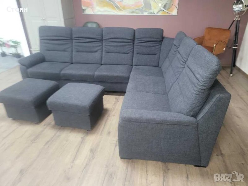 ПРОМОЦИЯ!!! Тъмно сив ъглов диван от плат и две табуретки POLOPOL PP-HS10002