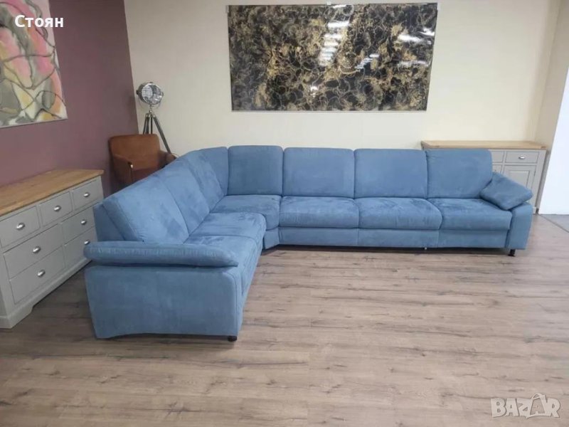 Син ъглов диван от плат с фунция сън MM-ZE1059.