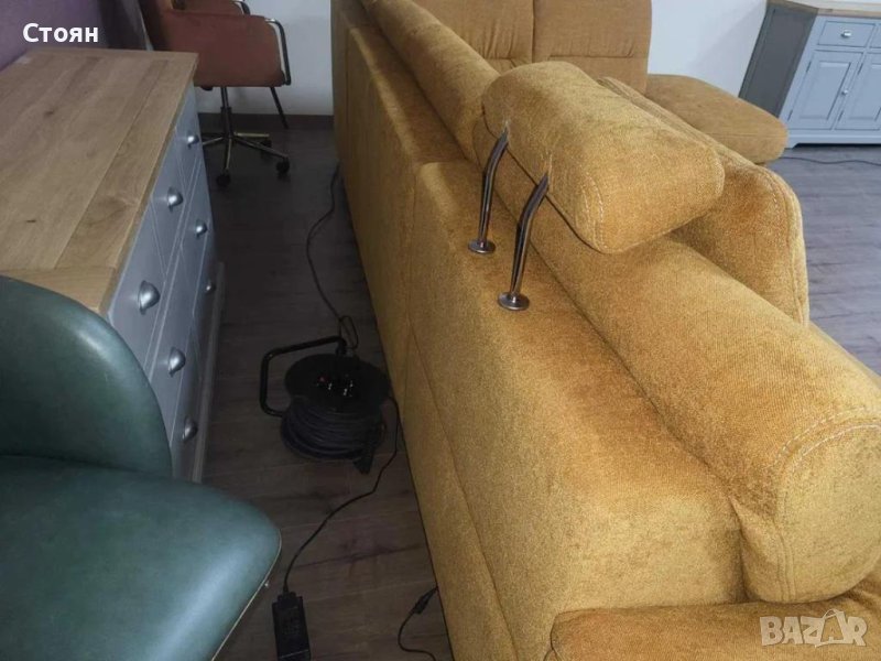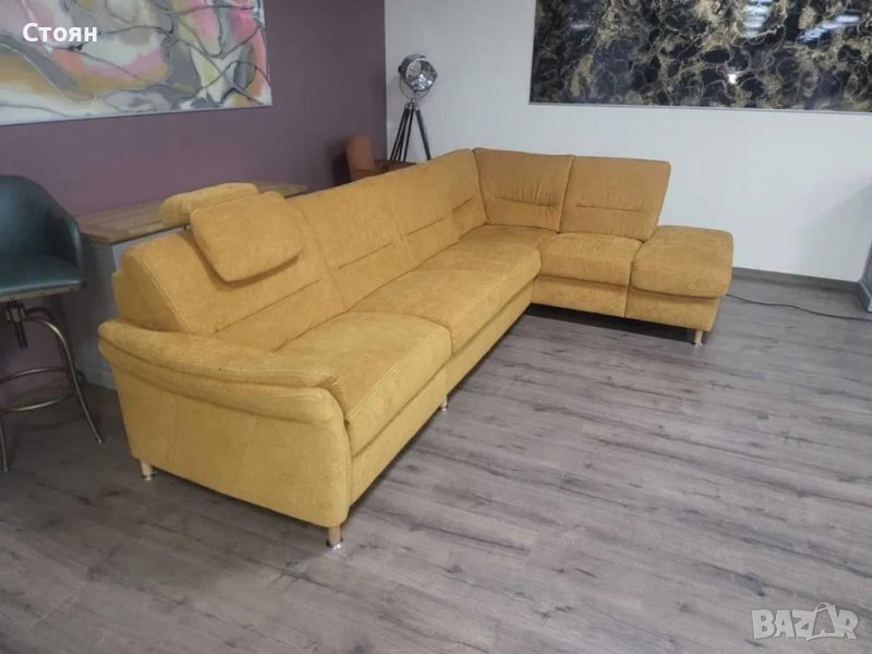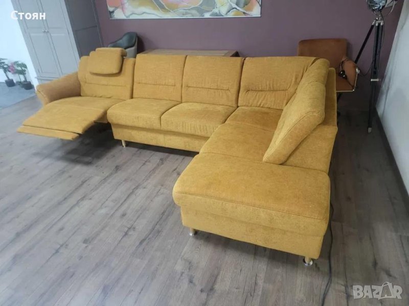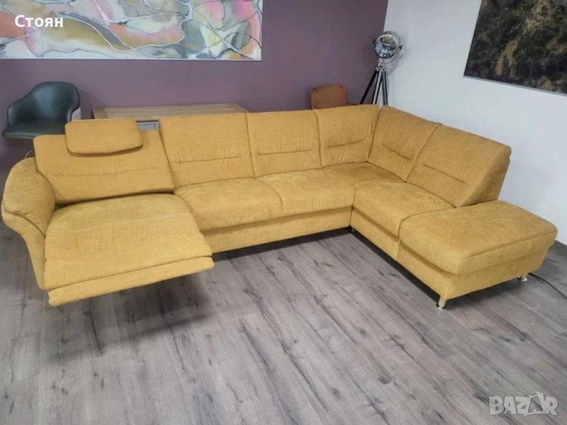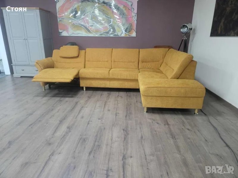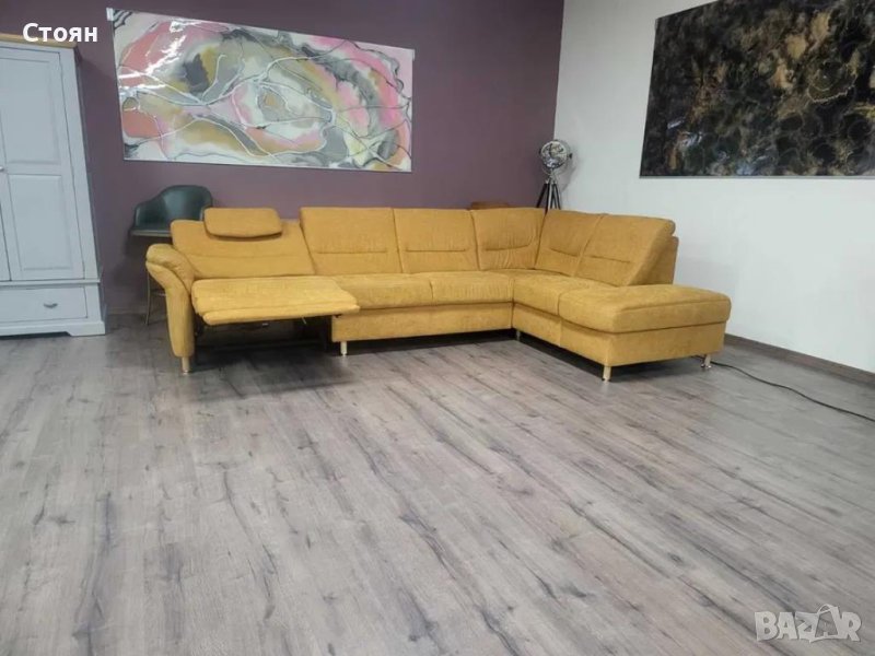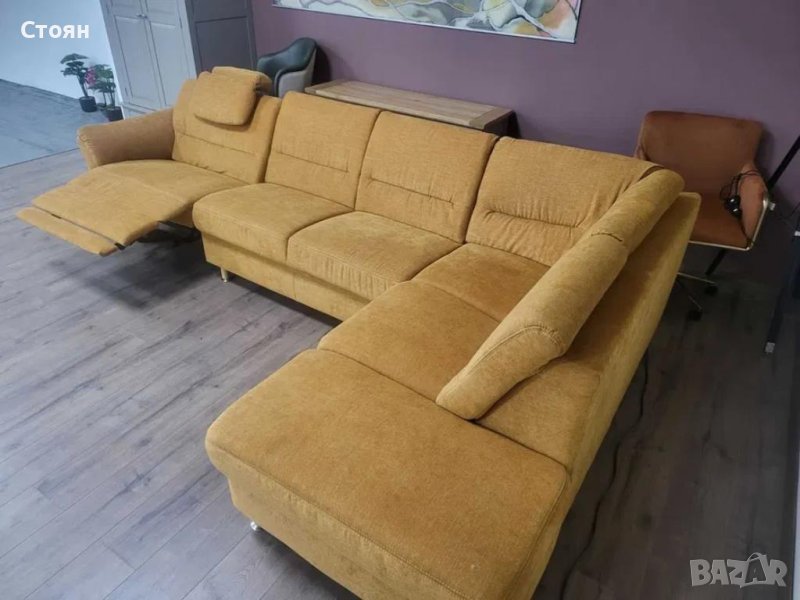 Ъглов диван от плат цвят канела DAKAR с електрически релаксиращ механизъм на едната крайна седалка.