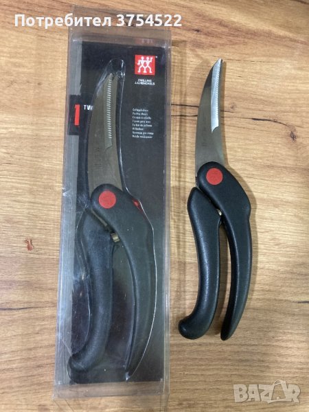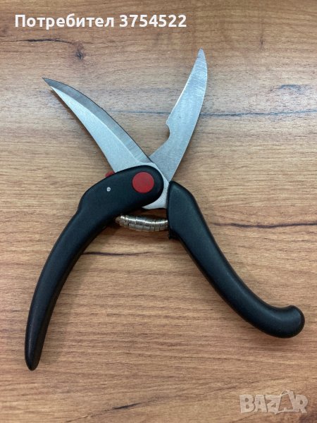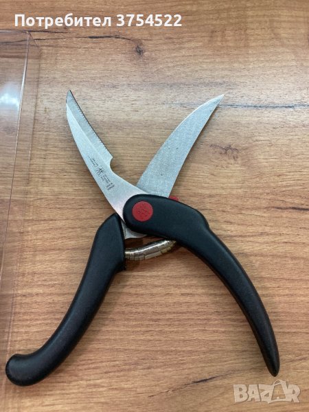 ножица, за завършване колекцията на всеки готвач. Специално проектираната форма на ножицата лесно разрязва всякакви домашни птици като пуйка, патица, гъска или пиле и може лесно да прорязва кости и стави. Извитата назъбена част бързо прорязва плътта и кожата, без да се изплъзва, докато назъбеното острие улеснява работата при рязане на костите. Превъзходната конструкция от неръждаема стомана с високо съдържание на въглерод гарантира, че остриетата остават остри и в страхотна форма, докато удобните формовани черни полипропиленови дръжки са лесни за хващане и имат червена плъзгаща се ключалка, за да пазят остриетата в безопасност.