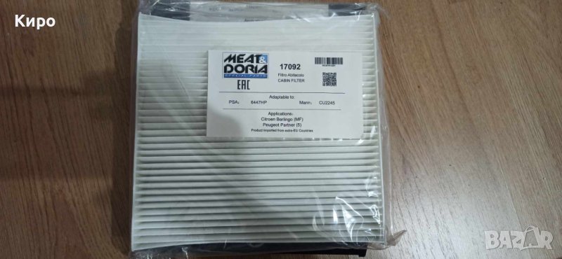 Продавам чисто нов, не разопакован филтър купе за Citroen Berlingo - Xsara & Peugeot Partner.Код на артикула за проверка на съвместимост - 6447HP.
