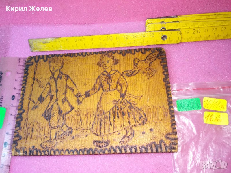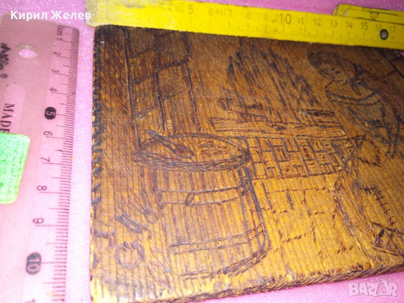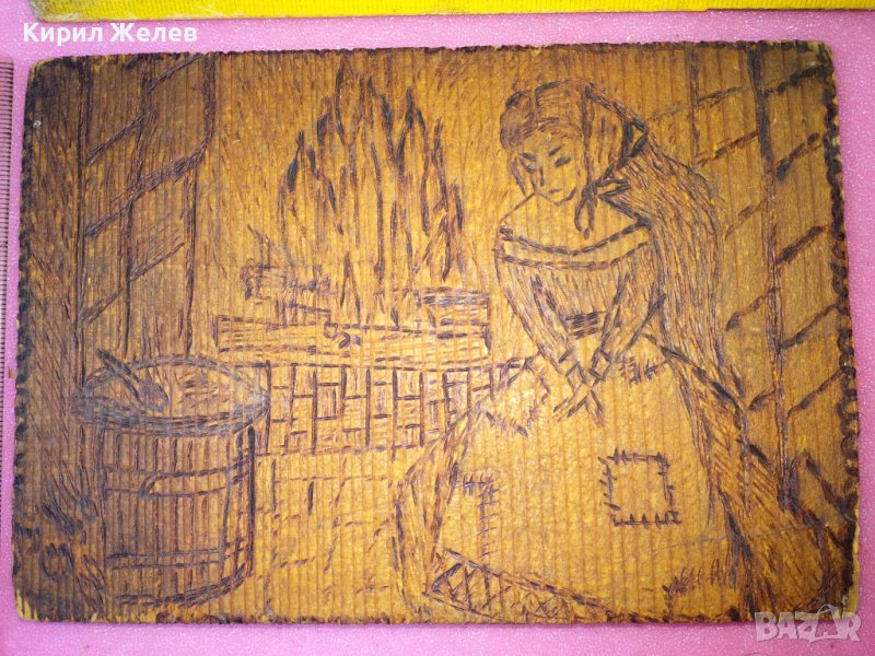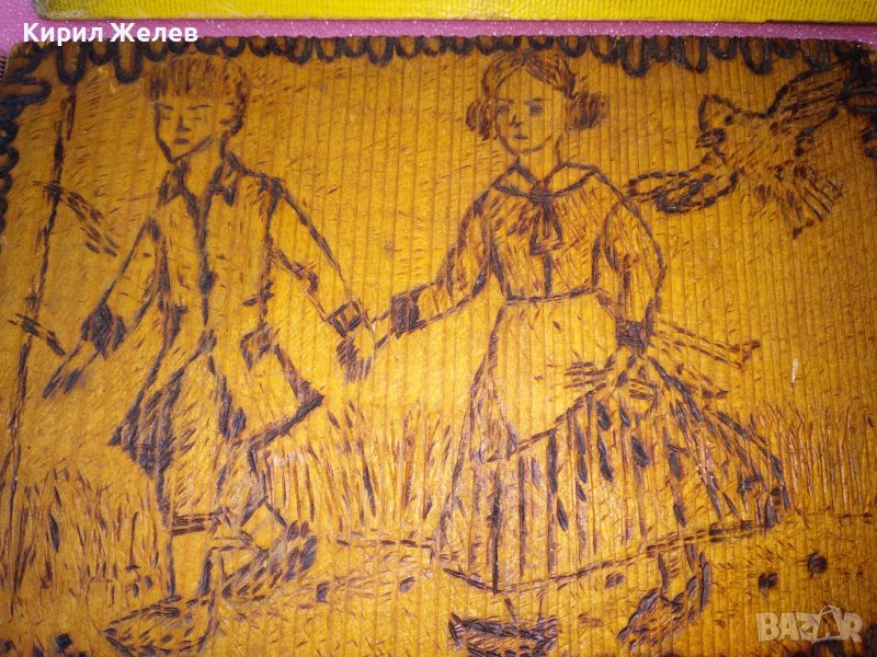СТАРА ДВУСТРАННО ПИРОГРАФИРАНА ПРИКАЗНА РИСУНКА ХЕНЗЕЛ и ГРЕТЕЛ / ПЕПЕЛЯШКА ДЪРВЕНО АРТ ПАНО 42828