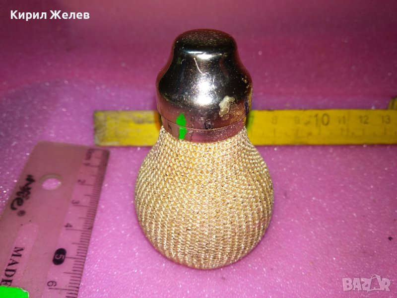 ШАРМАНТНА СТАРА ВИНТИДЖ ПУДРИЕРА ГУМЕНО ШИШЕНЦЕ - ПРЪСКАЛКА с ОПЛЕТКА ТЕКСТИЛ и МЕТАЛНО КАПАЧЕ 42881