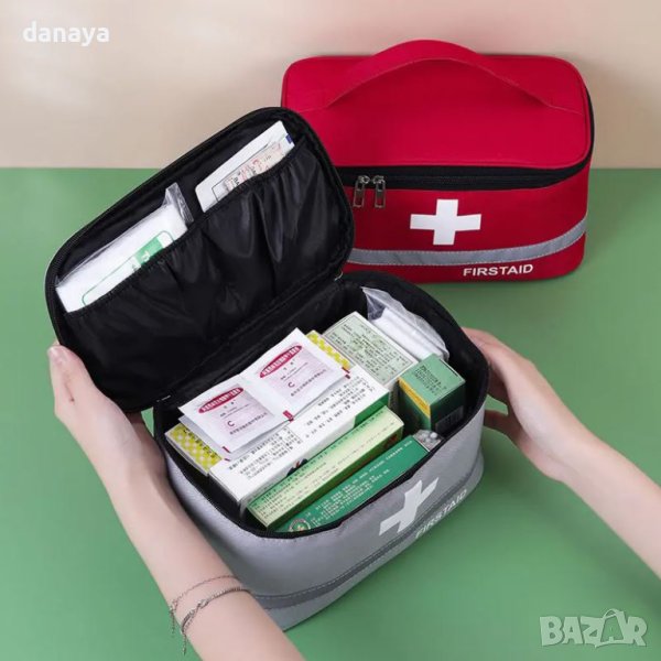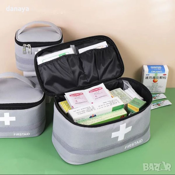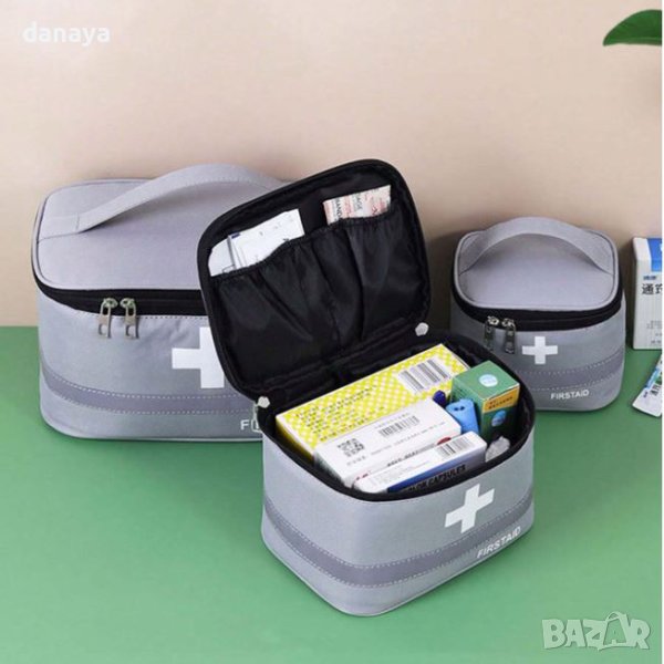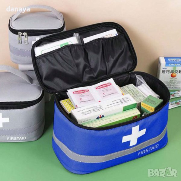 Чанта аптечка за първа помощ. Удобен органайзер аптечка за път за съхранение и пренасяне на лекарства и санитарни материали. Страшно удобна за пренасяне на най-необходимите лекарства, когато сте на път, на къмпинг, на почивка, разходка и др. Чантичката се предлага в 3 размера и 3 цвята. Голямата и средната чанта има много отделения, които ще държат подредени всички лекарства. Изключително удобна вещ, която всеки дем трябва да има.