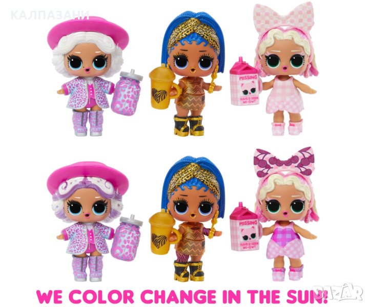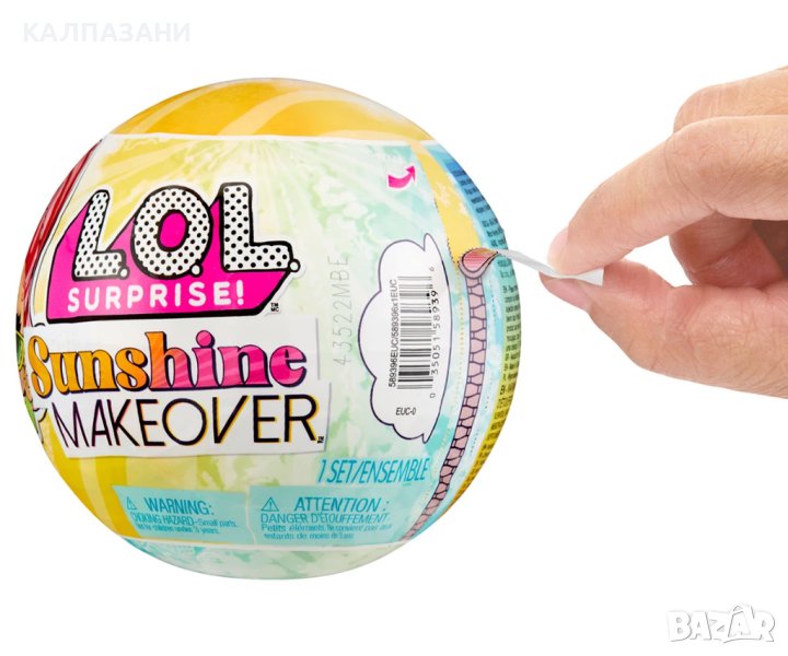 Представяме Ви LOL Surprise Sunshine Makeover с чисто нова промяна на цвета на слънцето! Просто излезте на слънчева светлина, за да видите разкриването на промяната на цвета! Всяка кукла Sunshine Makeover има своя собствена уникална промяна на цвета, променяща нейната мода, прическа или грим/тяло! Гледайте как промяната на цвета изчезва и се появява отново, когато я преместите от сянка на слънце и обратно. Нахранете куклата си за водна изненада! Тя ще плюе, ще плаче или ще дрънка? Всяка LOL Surprise Sunshine Makeover Doll включва 8 изненади. Съберете всички 12 кукли LOL Surprise Sunshine Makeover! Колекционерските кукли LOL Surprise със стилна прическа, забавни за обличане тоалети и много детайлни аксесоари правят перфектна играчка и комплект за игра за деца от 4 до 7 години и нагоре момичета и момчета за въображаема игра на преструвки! Като подарък за рожден ден или подарък за всеки специален повод, куклите осигуряват часове на социална игра с братя и сестри и приятели!