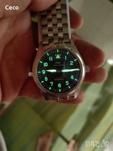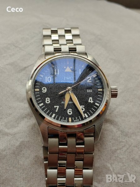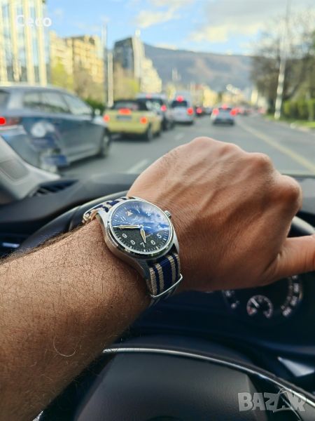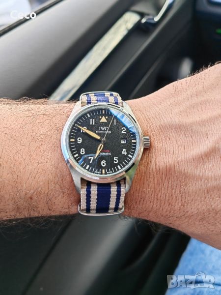 Автоматичен часовник IWC Schaffhausen Spitfire. Часовника е изключително красив и детайлен с релефен циферблат. Ориентирайте се по цената! За въпроси по телефона или съобщение. Поздрави! Подарявам и Нато каишката от последната снимка. Сложих я само за проба, часовника е нов.