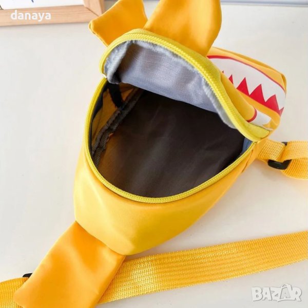 Малка, но много симпатична раничка за момчета или за момичета. Раницата е с форма на акула в различни цветове. Малка чанта за рамо с едно основно отделение и регулираща се дръжка. Супер лека! В нея ще се събере всичко най-необходимо за една разходка – телефон, ключове и портмоне. Раницата е идеална за разходки, каране на колело, спортуване и игри на открито, когато детето има нужда само от най-необходимите вещи.