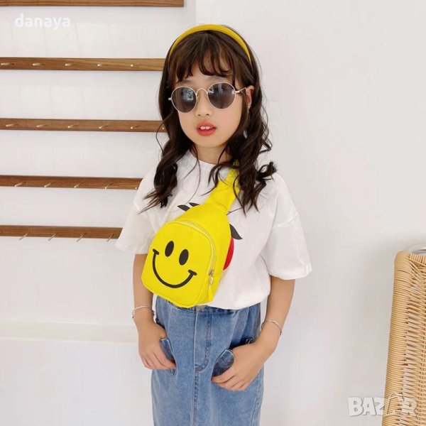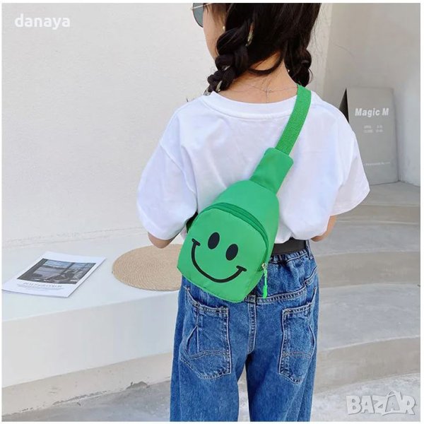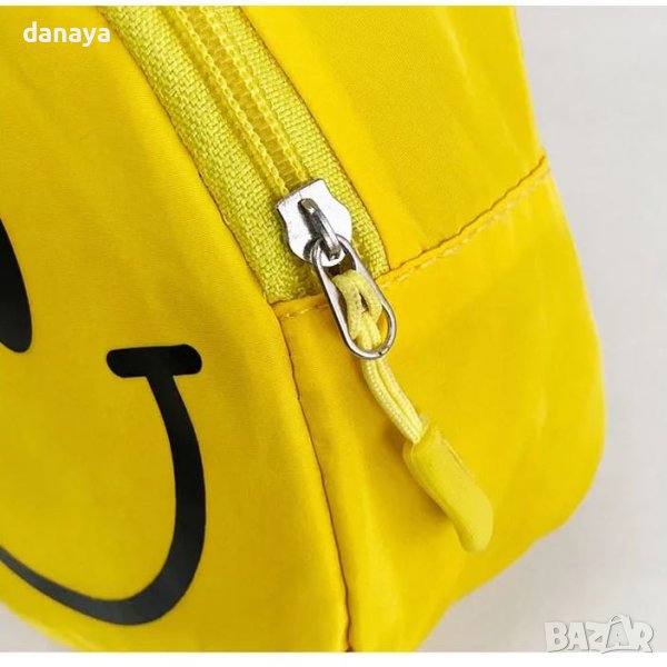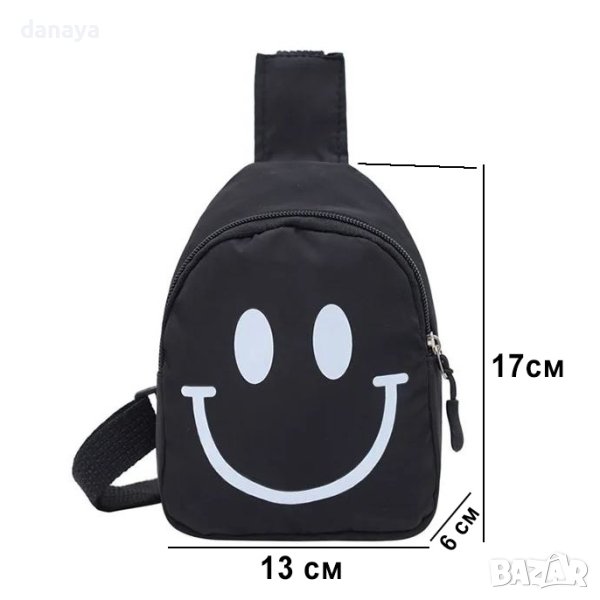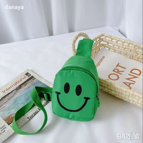 Малка, но много симпатична раничка за момчета или за момичета. Раницата е с форма на усмихнато лице в различни цветове. Малка чанта за рамо с едно основно отделение и регулираща се дръжка. Супер лека! В нея ще се събере всичко най-необходимо за една разходка – телефон, ключове и портмоне. Раницата е идеална за разходки, каране на колело, спортуване и игри на открито, когато детето има нужда само от най-необходимите вещи.