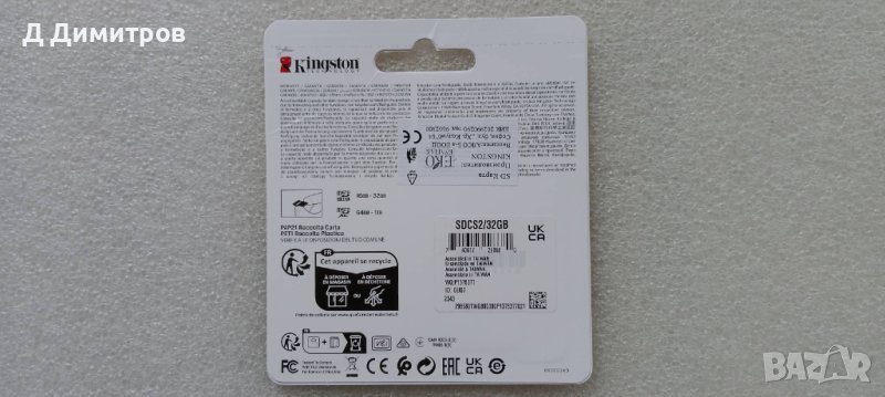 Кingston canvas select plus 32gb висок клас. Картата е чисто нова неразпечатана. Подходяща е за смартфон, фотоапарат, компютър / лаптоп.