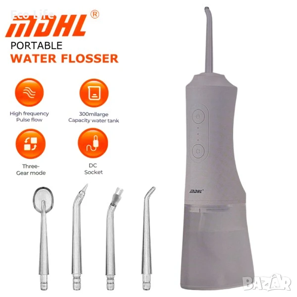 Орален иригатор (зъбен душ) с 4 почистващи глави, резервоар 300 мл