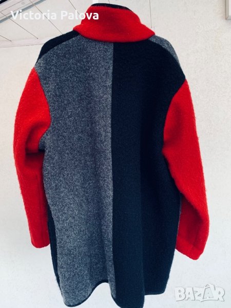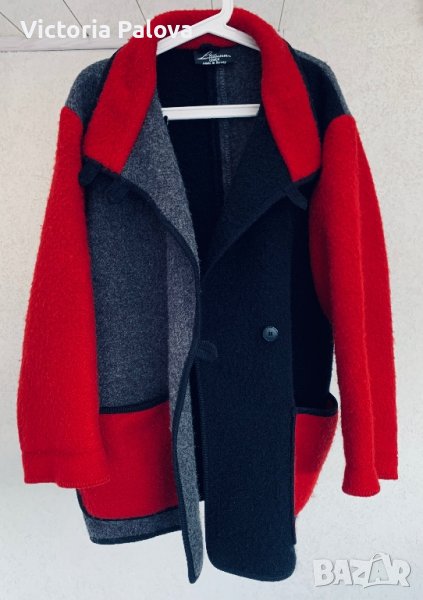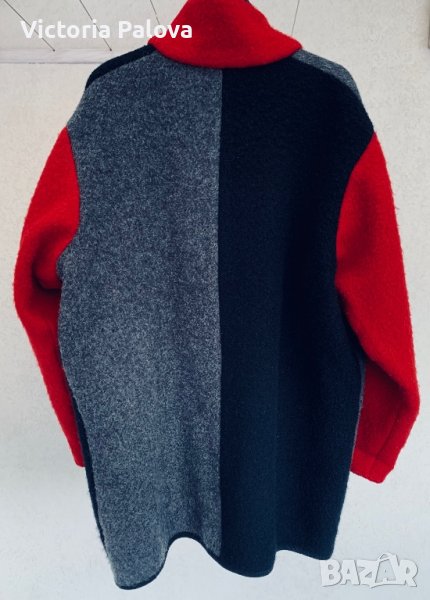 Много красиво леко палто овърсайз без подплата, от чиста 100% вълна, много топли. Палтото струва около 400 евро, изпълнява се по поръчка.Облечено изглежда като кокон, широко и удобно, като одеяло. Рамо - 56см, ГО - 70см, дължина - 85см, ръкав - 60см. Ръкавът е широк 30см .