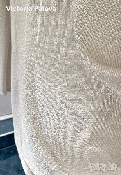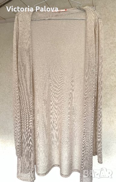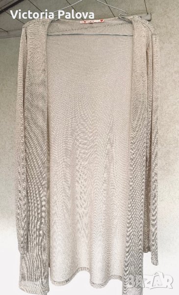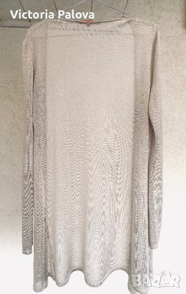 Много нежна тънка прозрачна жилетка без закопчаване за елегантен и красив “лук”. Цветът е неутрален, блясъкът - ненатрапчив. Рамо - 42см, ГО - 54см, дължина - 82см, ръкав - 68см .