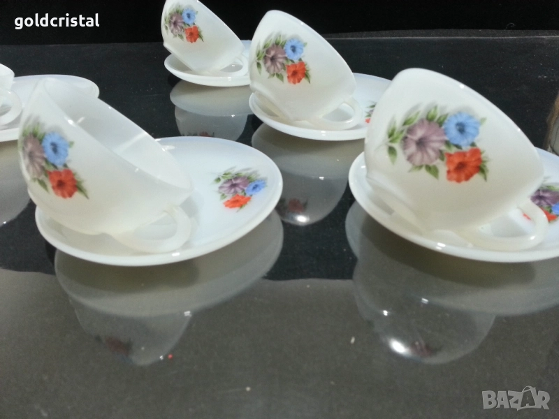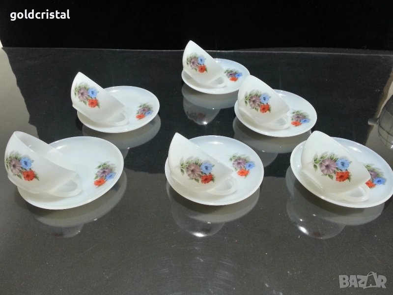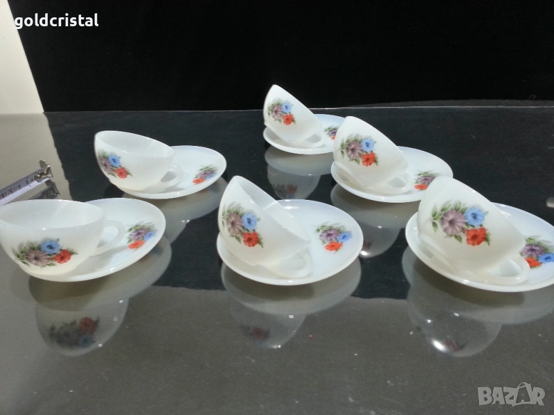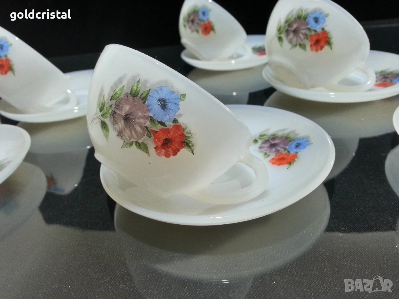Френски аркопал чаши за чай кафе сервиз комплект сет лот ретро арт декор винтидж колекция стари антикварни предмети обзавеждане за дома и семейството подходящи за подарък за ценители и колекционери