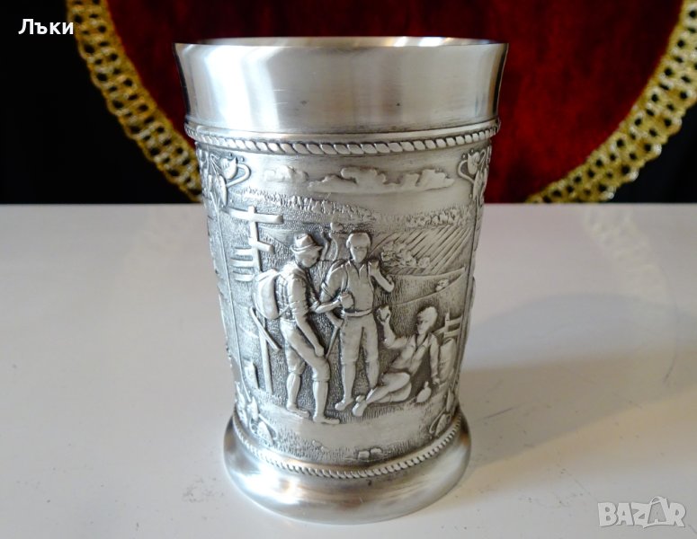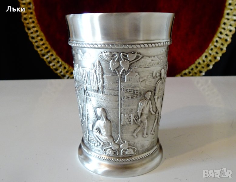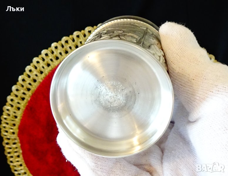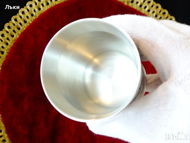 изработка от 95% калай и 5% сребро,маркирана със знак за високо качество.Чашата