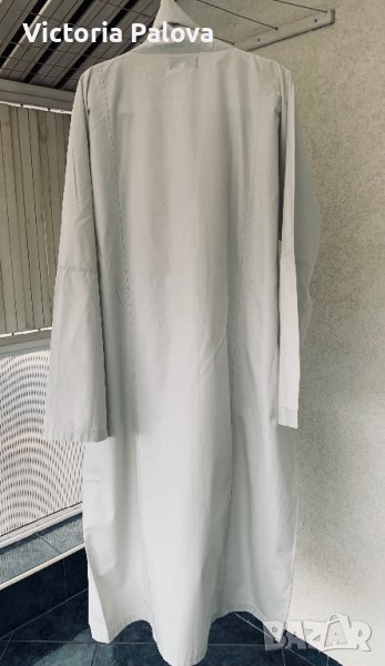 Овърсайз дълга рокля или тренч, свободна и много широка, с цип отпред и два джоба, без шев по рамото, минималистичен интересен модел. ГО - 79см, дължина - 124см, ръкав от мишница - 51см.