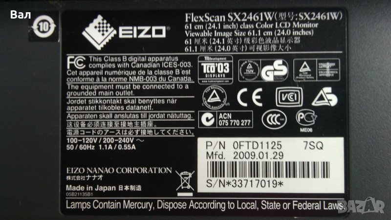 EIZO FlexScan SX2461W 24.1 инча (61см.)