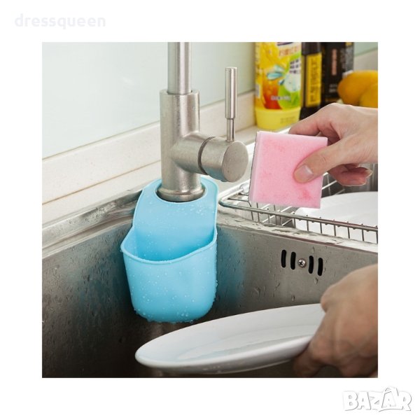 Работното пространство около кухненската мивка понякога може да изглежда не много приятно заради разхвърляните около нея кърпички, гъбки, четки, препарати за миене на чинии и т.н. С практичния органайзер – поставка успешно ще се справите с хаоса около мивката. Ще добавите ред и логика в подреждането на кухненските приспособления за миене. Специалната форма на поставката подхожда идеално за кухненски гъбки за миене на чинии (течността от тях ще се стича надолу и през отворите на органайзера – в мивката), телени четки, четки за миене на чиниии, някои видове бутилки с препарати за миене също могат да се поместят в този органайзер. Поставката – органайзер за мивка може да се използва и в банята, но за други неща, като четки и пасти за зъби и други принадлежности за баня. Захващането става с помощта на регулируема каишка, която обгръща основата на смесителя. С тази каишка органайзера може да бъде захванат и към други неща, не само към смесител.