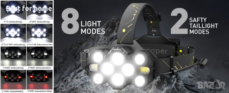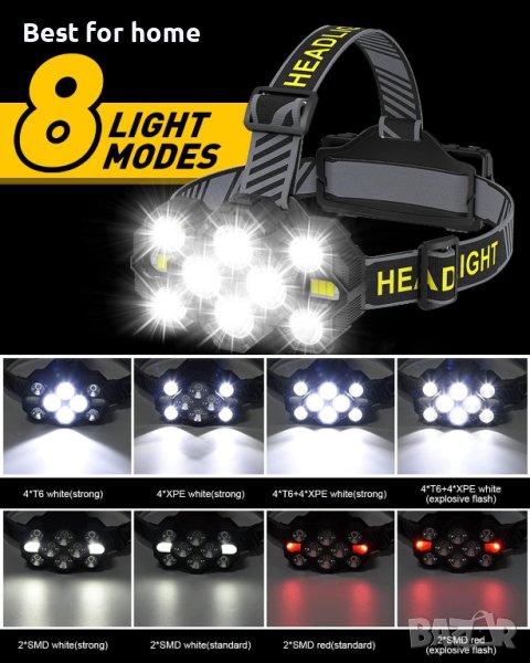 2023 СУПЕР ЯРЪК 10 LED И ДЪЛГОТРАЕН ФЕНЕР ЗА ЧЕЛНИК - 2023 Надстроена Висококачествена батерия поддържа 3 часа бързо зареждане, което осигурява 7-8 часа работа. Благодарение на усъвършенствания дизайн на LED крушки T6*4 + XPE*4+SMD*8, животът на батерията при пълно зареждане при всяка употреба е три пъти по-дълъг и по-ярък от нормалните фенери на пазара.