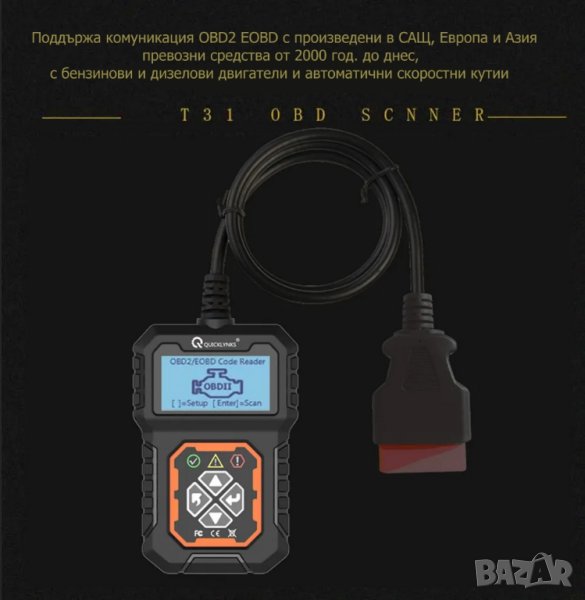 Full OBD2 EOBD автомобилен диагностичен кодочетец QUICKLYNKS T31