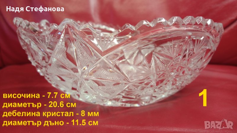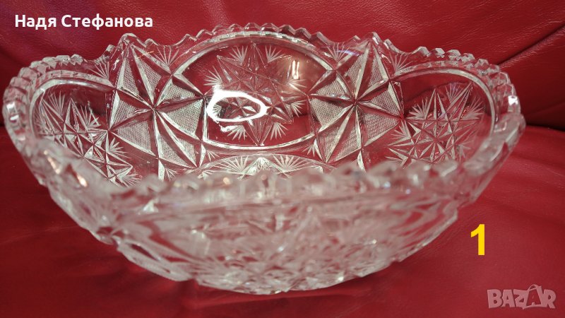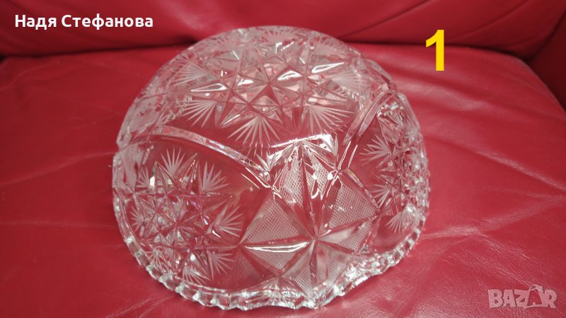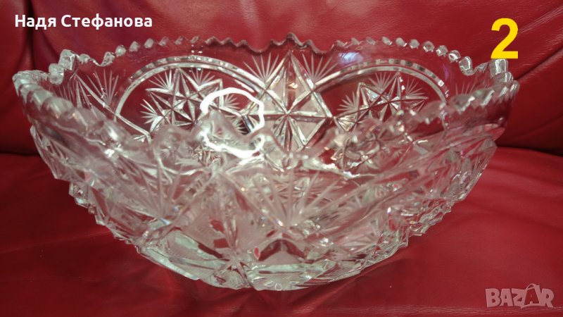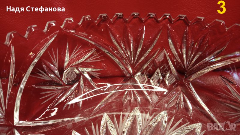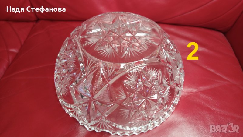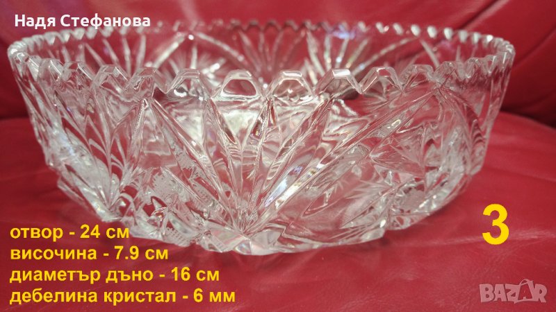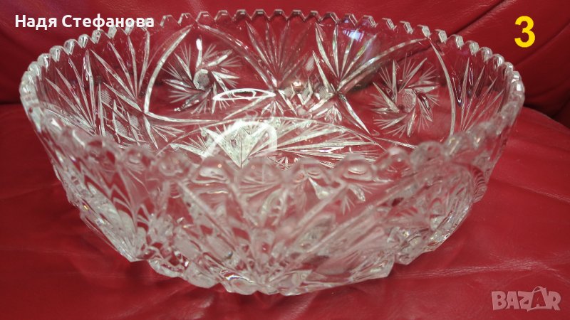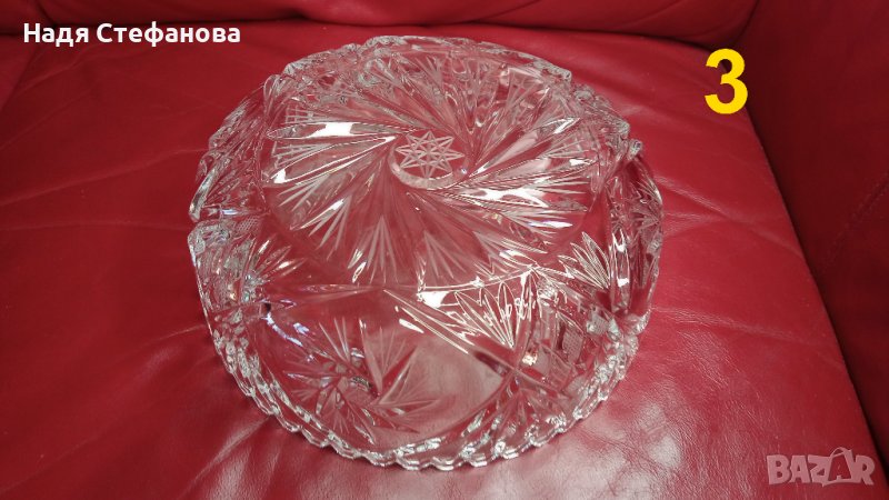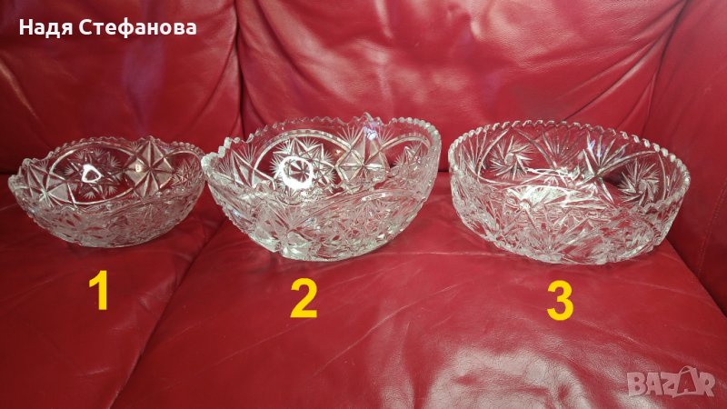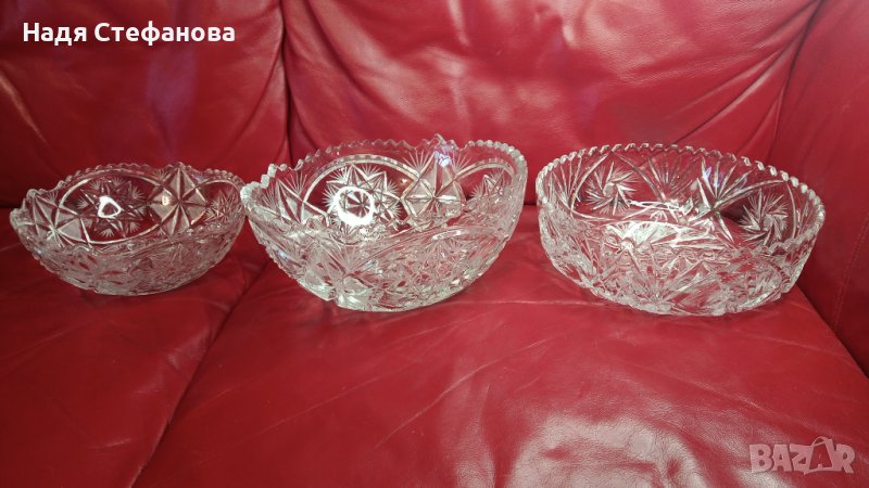 Три кристални купи, бонбониери, фруктиери големи, кръгли, гравюра