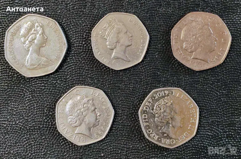 50 пенса - 1969, 1997,1998, 1999, 2019