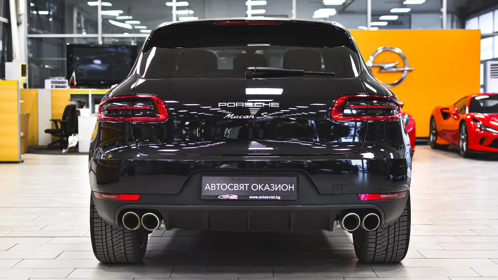 Автосвят ООД - официален представител на Opel и Mazda, предлага на Вашето внимание проверен автомобил Porsche Macan S 3. 0 diesel V6 PDK Допълнителни услуги: - лизинг; - сътрудничество при регистрация; - възможност за обратно изкупуване; - посредничество при застраховане; - посредничество при завеждане на щети при застрахователя. C9X Външен цвят Jet Black черен металик Салон кафяв перфорирана кожа 1PC Секретни болтове 1D7 Подготовка за теглич 6XT Външни огледала с памет и подгряване 7V5 Циферблат на оборотомера в сребристо QJ2 Пакет Алуминий 7AK Алармена система, вътрешно наблюдение и система за защита против теглене 5TE Алуминиеви декоративни вътрешни лайстни 7M9 Предни вътрешни декоративни прагове от алуминий 7X2 Парктроник отпред и отзад UF1 Универсален аудио интерфейс (AUX, USB, iPod ) 7I2 Porsche Vehicle Tracking System Plus 8T1 Круиз контрол 8JE Ксенонови фарове и Porsche Dynamic Light System (PDLS) 2P2 Защита на борда на задната броня при товарене в изпълнение от неръждаема стомана 8Q3 Автоматични фарове 7T1 Навигация за извън терен с пресмятане на маршрут и показване на географска ширина и дължина, Porsche Communication Management (PCM) 8WB Предни фарове за мъгла CY4 20 Sport Design джанти 3FU Панорамен покрив 4E7 Моторизиран капак на багажник 3PN Електрически регулируеми предни седалки с памет 4A3 Отопление на седалките отпред 8X1 Система за почистване на фаровете 8N7 Сензор за дъжд 9W5 Подготовка за Bluetooth 7E6 Печка 4GC Атермично предно стъкло Озвучителна система BOSE Мултифункционален кожен волан Климатроник Бордкомпютър Управление на мултимедията от волана Регулиране на волана във височина и дълбочина Дистанционно централно заключване Дневни светлини Алуминиеви джанти Ел. огледала + отопление Ел. стъкла ISOFIX - система за закрепяне на детско столче Предни въздушни възглавници Странични въздушни възглавници Въздушни възглавници завеси Автомобилът се намира в Автосвят гр. Русе За контакти: 0888 414 107 Борислав Русев - шоурум Русе 0885 003 477 Росен Вълев - шоурум Русе 0882 902 081 Нина Мучинова - шоурум Русе 0885 186 862 Иван Гърков - шоурум Плевен Референтен номер на обявата V79706