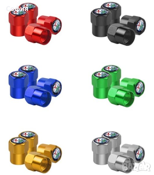 Чисто нови висококачествени, метални капачки за винтили за Алфа Ромео Alfa Romeo и други автомобили. Капачките се продават в комплект от 4бр. Налични в различни цветове!