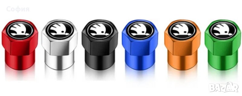 Чисто нови висококачествени, метални капачки за винтили за ШКОДА SKODA и други автомобили. Капачките се продават в комплект от 4бр. Налични в различни цветове!