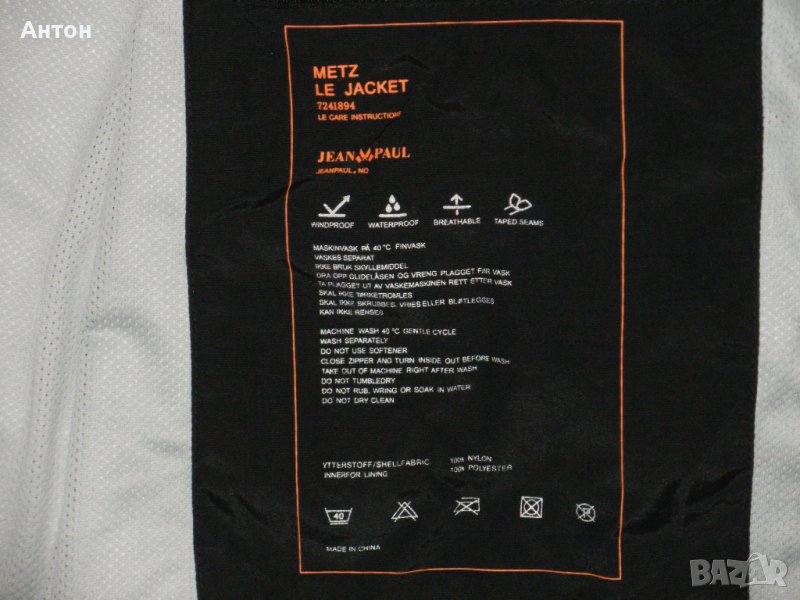 Ветровката е на JEAN PAUL, оригинална, обличана без забележки, като нова. По номер е 3XL но е за 2XL, сравнете мерките. Цвета е черно, тънка подплата на дупчици. Материята не пропуска дъжд и вятър. Отпред има четири джоба с ципове, има и един вътрешен с цип. Има лого на двата ръкава, отпред, отзад и на циповете. Отпред е по късо.