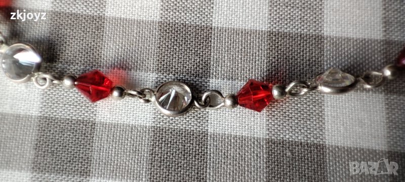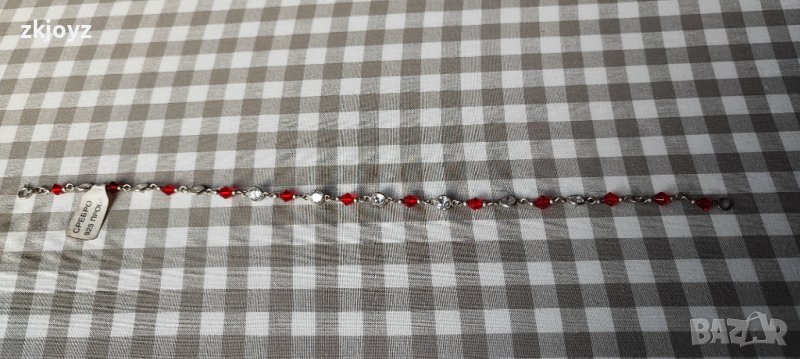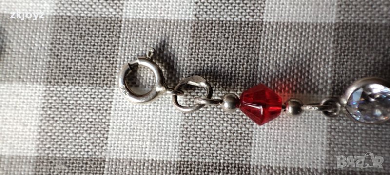 Красива нова гривна за крак изработена от сребро (проба 925, маркирана),с дължина 25 сантиметра, тегло 4.90 грама, украсена с прозрачни с червен цвят цирконии .