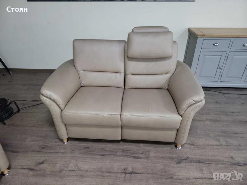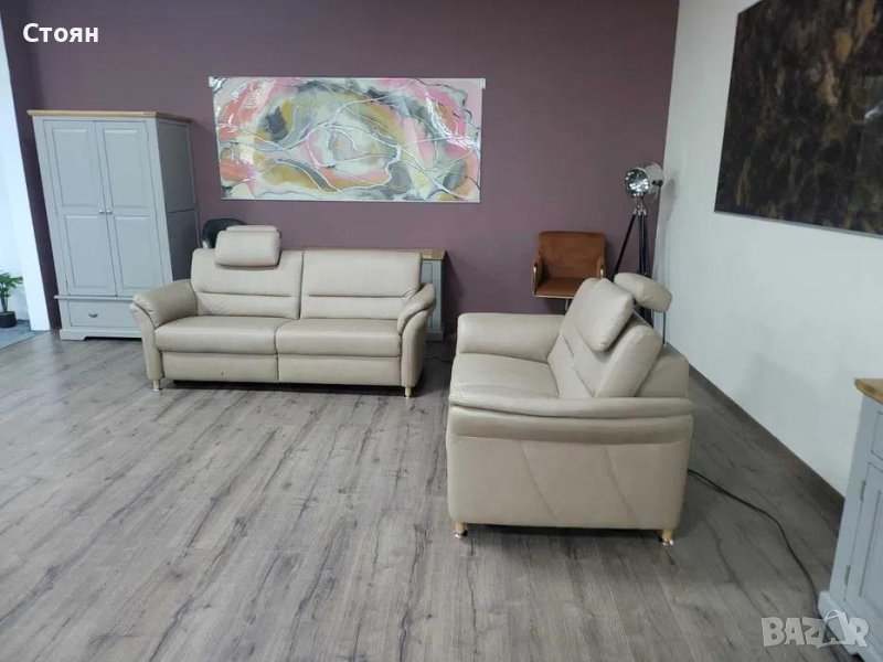 Комплект кожени дивани тройка и двойка цвят камел с ел. релакс
