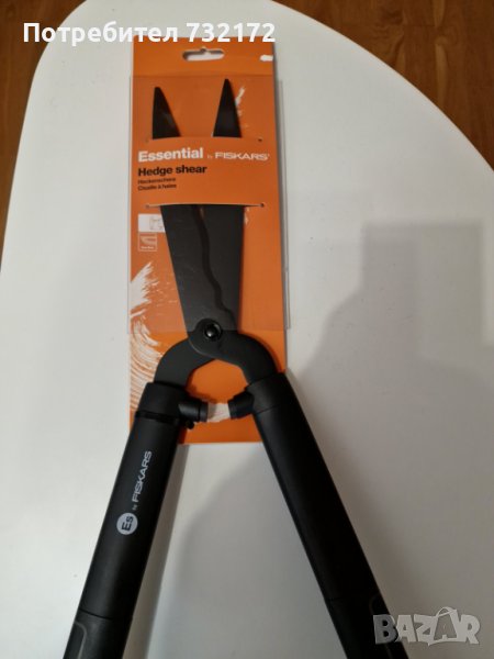 Нови, неразпечатани ножици за жив плет на Fiskars са подходящи за подрязване и оформяне на жив плет, храсти и др. Благодарение на леката и здрава дръжка от пластмаса, можете да работите с по-малко усилия от обикновено. Снабдени са с буфер, който гарантира смекчаване на ударите. Вълнообразните форма остриета дават много добър захват върху клоните и прецизно рязане. Остриетата на ножицата са стоманени и с незалепващо покритие. Заточват се много лесно. Дължина: 58 см, тегло: 800 гр