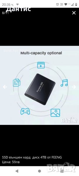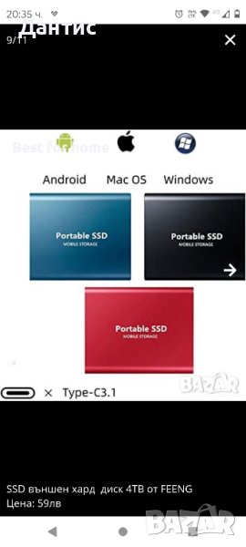Външен твърд диск за множество компютри Външният SSD е съвместим с компютърни системи за архивиране, настолни компютри, PC, Mac, Windows, Linux, Android и т.н. и поддържа всички видове компютри с USB порт и най-новите лаптопи и смартфони с Type- C порт.