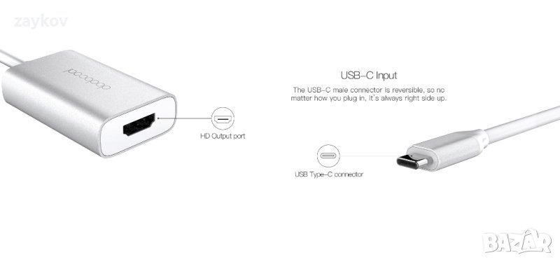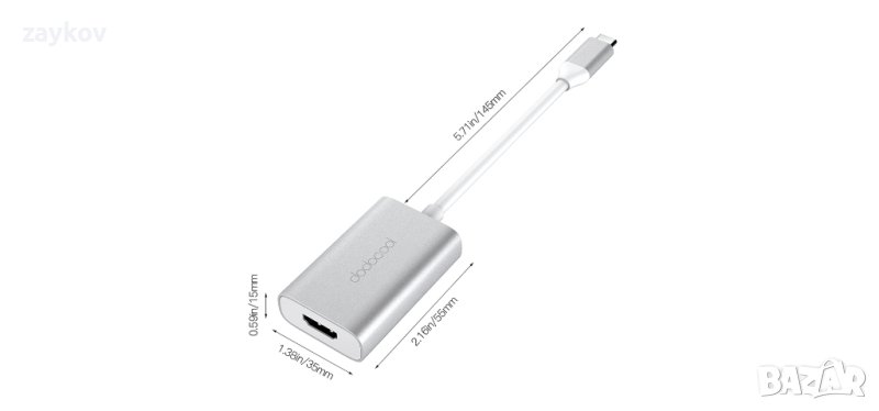 Dodocool USB-C към HD изходен адаптер ви позволява да дублирате или разширите вашия дисплей към вашия HDMI-активиран телевизор, проектор или дисплей в разделителна способност до 3840*2160 при 60Hz. Той също така извежда видео съдържание като заснети видеоклипове и филми. Просто свържете адаптера към USB-C порт, който поддържа алтернативен режим на дисплея на вашия MacBook или други USB-C лаптопи и след това към вашия телевизор, проектор или дисплей чрез HDMI кабел (не е включен). Това е идеален инструмент за изнасяне на презентации в класни стаи и конференции.ХарактеристикиUSB-C входUSB-C мъжкият конектор е реверсивен, така че независимо как го включвате, той винаги е с дясната страна нагоре.Видео HD изходен адаптерПоддържа дублиране на това, което се показва на екрана на вашето устройство - включително презентации, слайдшоута, уебсайтове и други - към вашия HDMI-активиран телевизор, проектор или монитор в разделителна способност до 3840*2160 при 60Hz. Обратна поддръжка на 2K / 1080p / 720p / 480p / 360p резолюции. Поддържа копиране на дисплея и разширяване на функциите на дисплея.Изключително преносимТънък, лек и компактен. Това е идеалният аксесоар за носене с вашите USB-C лаптопи.Първокласно качествоИзграден с корпус от алуминиева сплав и TPE кабел, той може ефективно да устои на корозия, да осигури твърдост и да осигури по-стабилно предаване на сигнала.