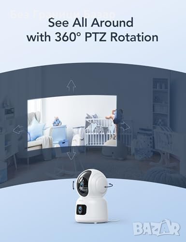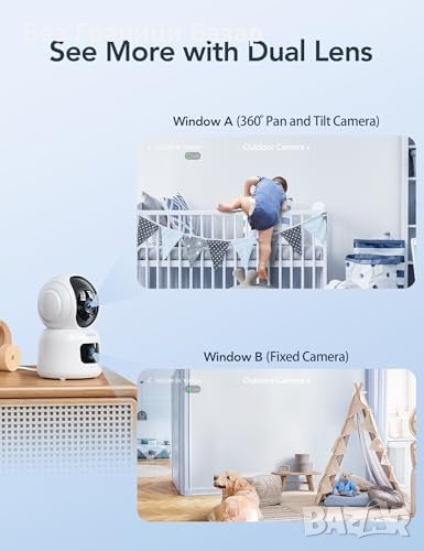 Нова 1080P Двойна Камера за Бебета - Нощно Видение, PTZ, Следене