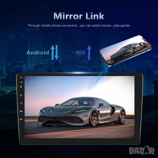 10" 2-DIN мултимедия с Android 12, 64GB ROM , 4GB DDR3_32bit RAM