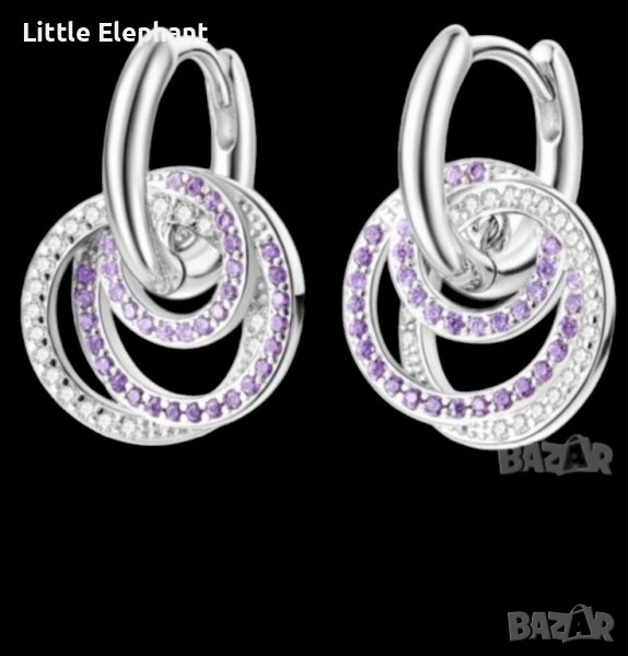 Дизайнерски модел сребърни вис обеци халки с кристали,triple,purpleand white/нови → Обява 44251928