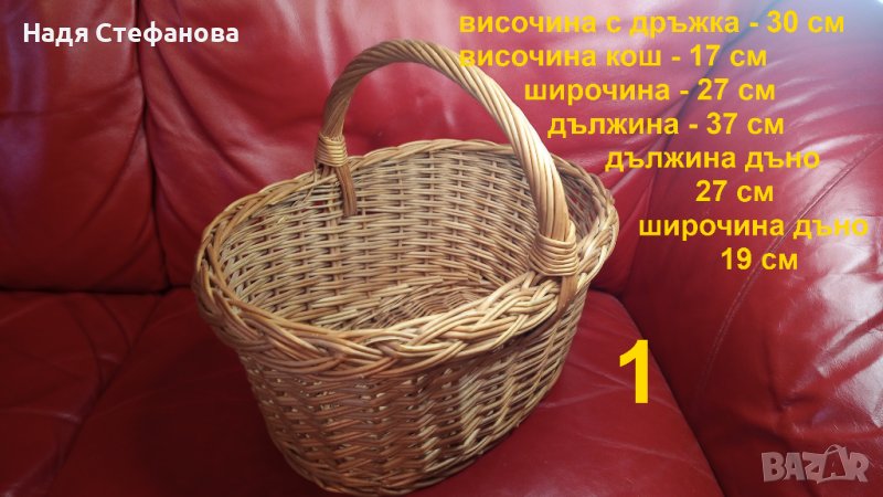 Прочетете моля много внимателно поясненията към обявата. Ако след прочитането нещо все пак не е изяснено, задавайте въпросите си тук чрез съобщение или на посочения телефонен номер. По принцип през деня съм в движение и е по-сигурно да мога да отговоря по телефона след 18 ч. При изменение редактирам обявата навреме. Ако направо харесвате нещо от обявата, директно може да го поръчате. Абсолютно здрави, запазени, без забележки. Размерите са на две от снимките. Много малка разлика в големините. Здрава оплетка и материал, могат да носят доста тежко. Изработка от едно време. Цената на една кошница е 40 лв. Изпращам добре опаковано от мен по Еконт с опция преглед и евентуално тест преди да се плати. НЕ ИЗПРАЩАМ ПО СПИДИ!!! Куриерската услуга е за сметка на купувача, но подготвям товарителницата през Базарбг и по тази причина имате отстъпка от 10% от нея. Изпращам след като тук на съобщение имам две имена, телефон за връзка и до кой офис на Еконт или до точен адрес до който да пътуват. Моля да пишете “името” на офиса на еконт, а не улицата на която се намира. Така ще избегнем изпращане към друг офис! 282на. При направена поръчка ще се обаждам в подходящо време на посочения от Вас телефонен номер за потвърждение!!!