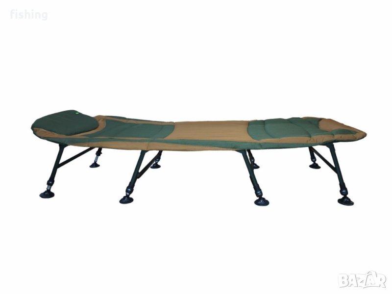 ZFISH Bedchair Siesta X8 е напълно нова концепция за "FLAT" безфугов шезлонг, чийто матрак ние много внимателно проектирахме и тествахме сами, за да можем да ви гарантираме максималния възможен комфорт и сме убедени, че е един от най- удобни шезлонги на пазара. Шезлонгът е достатъчно широк и благодарение на напълно плоската си конструкция наистина удобен. Самият матрак е изработен от издръжлив и перещ се полиестер: Oxford 600D. Разбира се, има солидни телескопични крака, които ви позволяват да повдигнете шезлонга до желаната височина и да го сравните с идеалната равнина. Краката са стандартно оборудвани с въртящи се крачета срещу потапяне в мек терен. Шезлонгите ZFISH Siesta се предлагат във варианти с 8 или 6 крака.