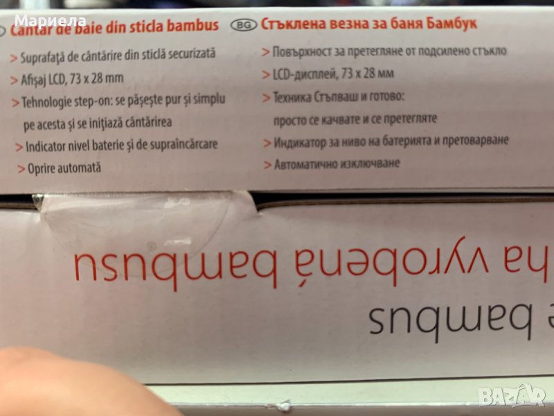 Кантара е изработен от подсилено стъкло с размер на повърхността за претегляне 30х30см. и височина 2 см.