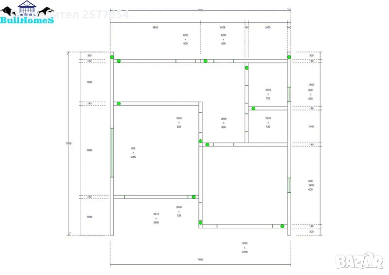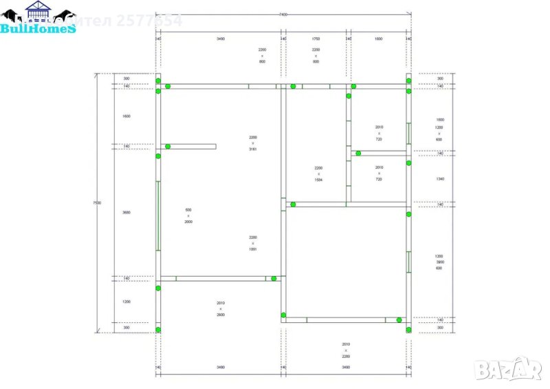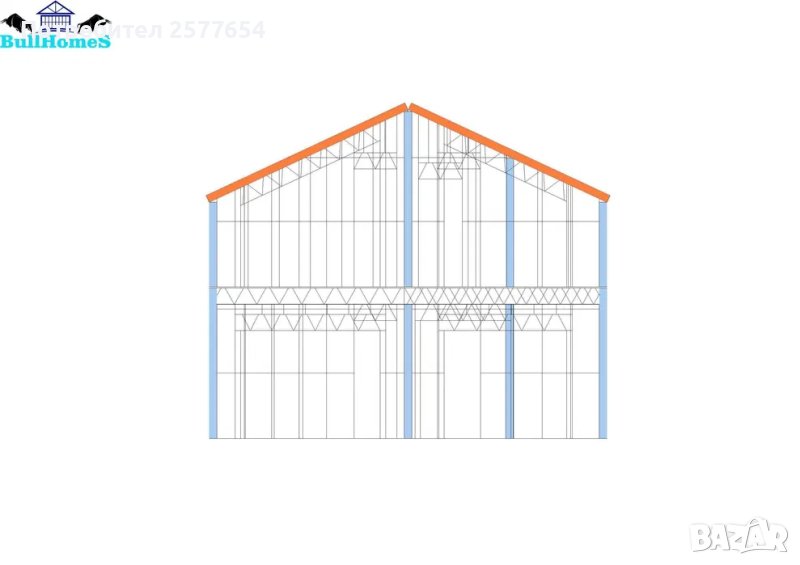 Преместваема къща 111м2 -7.5м х 7.4м - два етажа - етап Конструкция - готови за сглобяване профили.