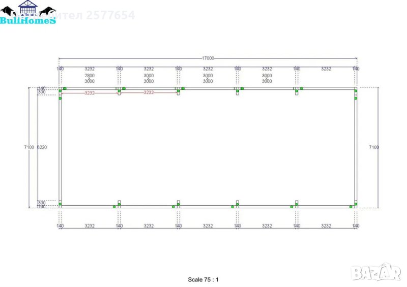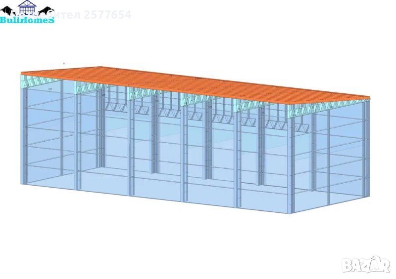 Хале, склад 121м2 - 7.10м х 17.00м х 5.00м- етап Конструкция - готови за сглобяване профили.