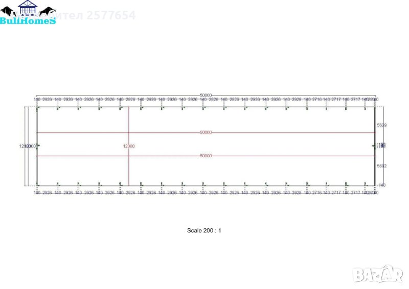 Конструкция за Хале - 600м² -12м х 50м х 5м - етап Конструкция - готови за сглобяване профили.
