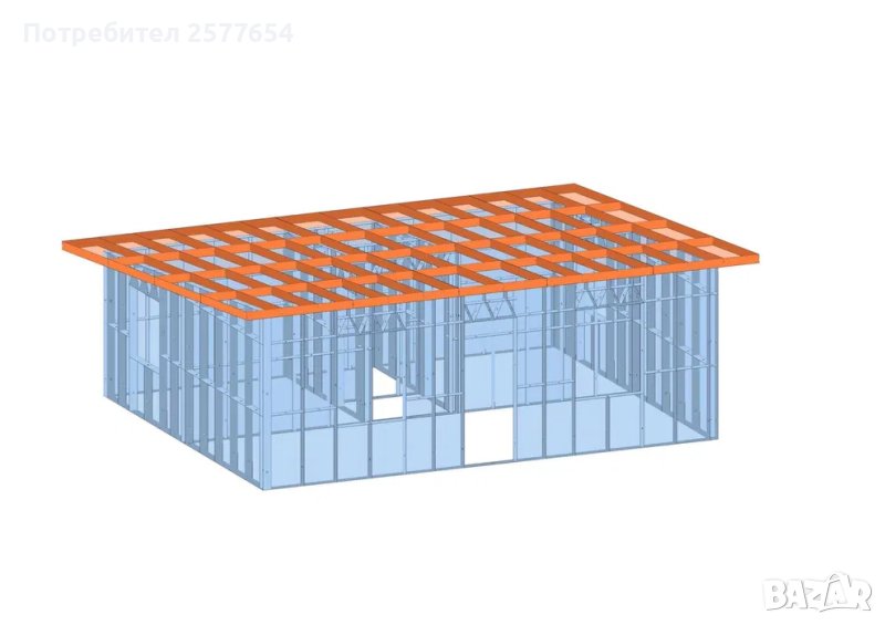 Конструкция за преместваема къща 52м² -8м х 6.5м - етап Конструкция - готови за сглобяване профили.