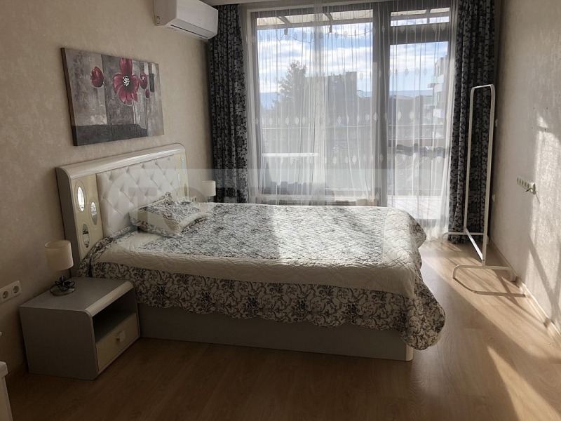 Апартаментът е разположен на пети етаж в нова тухлена сграда с отлично поддържани общи части и асансьор. Състои се от входно антре с гардероб, просторна дневна с кухненска част, 2 спални, 2 бани с тоалетна и просторна тераса с панорамна гледка, обзаведена с дървени мебели, газово барбекю, шезлонг.