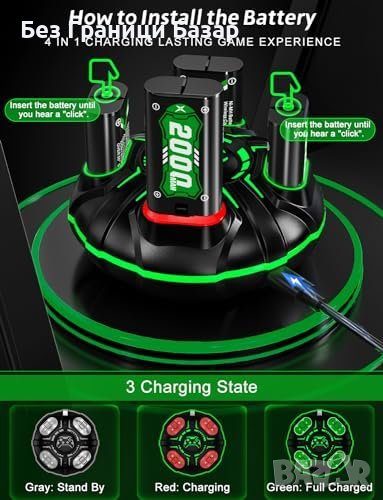 Нова Xbox Зарядна Станция + 4 Батерии 2000mAh за игри геймър